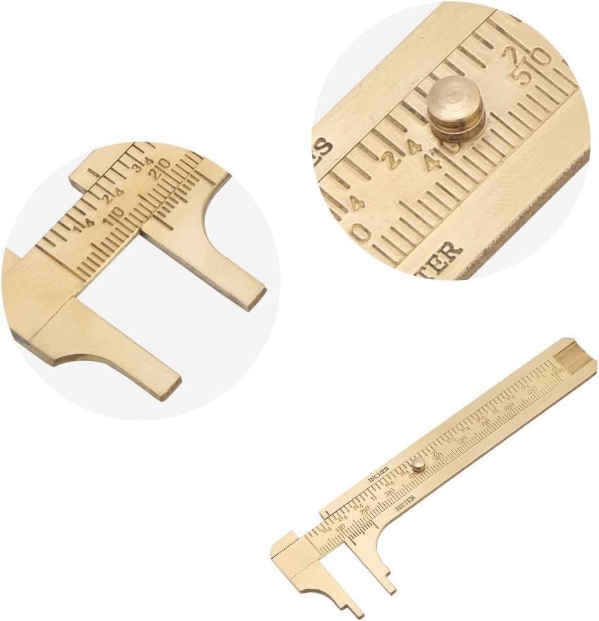 Home Tools Kalsi Brothers Vernier Caliper Ruler handy Sliding Gauge Brass Vernier Measuring Tool Double Scales mm/inch Mini Brass Pocket Ruler 100mm